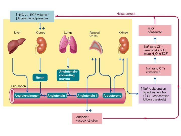 Control of sodium RA When ECF volume is low, need to Na+ RA at distal and collection tubules with aldosterone. More Na+K+ pumps and Na+ channels are made Renin is the trigger for eventual release of aldosterone, along a chain of events (reninangiotensin-aldosterone system or RAAS)