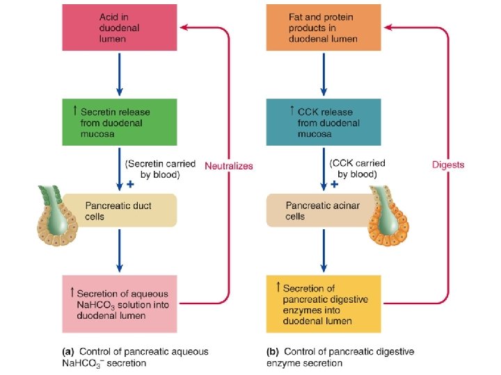 Controlling gastric juices. . Gastric phase – proteins, distension at stomach also stimulate gastric secretions via intrinsic plexus Low protein, low p. H is inhibitory, decreasing flow of gastric juices
