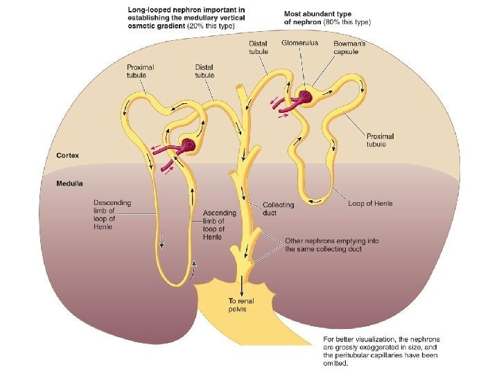 Needing water Filtrate has concentration of 100 mosm/liter Cortex Medulla Collecting tubule Concentration of urine may be up to 1, 200 = portions of tubule impermeable to H 2 O = passive diffusion of H 2 O = active transport of Na. Cl * = permeability to H 2 O increased by vasopressin
