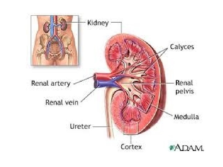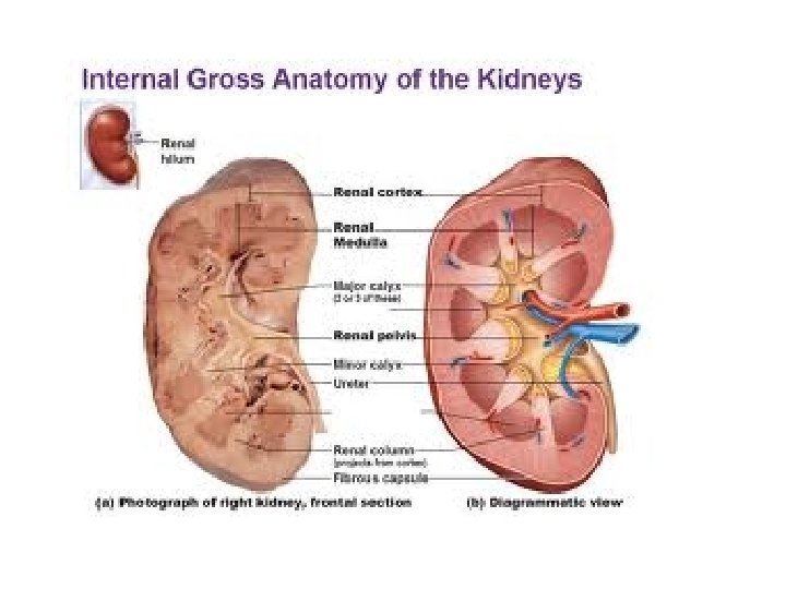 Inside anatomy • Renal Pelvis- flat basin like cavity – continuous with the ureter • Outer Cortex- lighter color outside margins, under the capsule