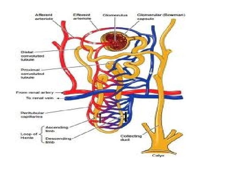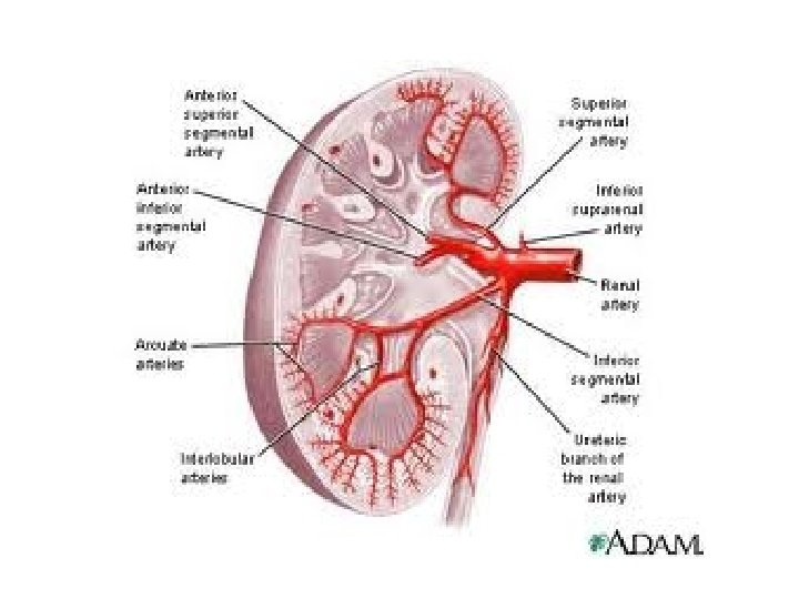 Blood Supply • The kidneys have a rich blood supply • ¼ of blood goes through per minute • Renal Arteries Interlobar arteries arcuate arteries interlobular arteries • Renal Veins interlobular veins arcuate veins interlobar veins