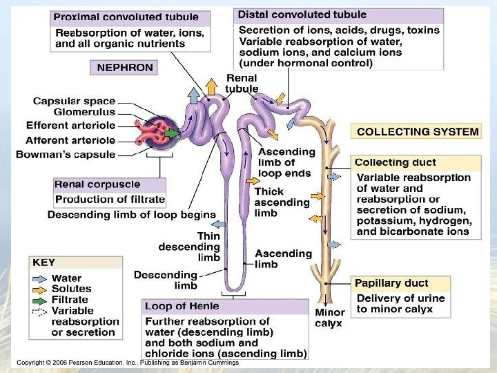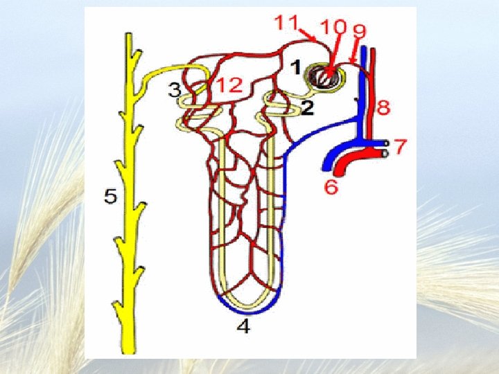 Okay, we got blood, now it is the nephron's turn • Blood vessels become tangled into a glomerulus which is located in a glomerular capsule (AKA Bowman's capsule) – Fluid in the blood is filtered into the capsule ( the proximal end of the renal tubule) • Renal tubule becomes highly coiled then dips down into the Loop of Henle – This is interlaced with capillaries – Fluid is returned to the blood and electrolyte balances are fine tuned here • The renal tubule climbs back up and empties into the collecting duct – we now have urine