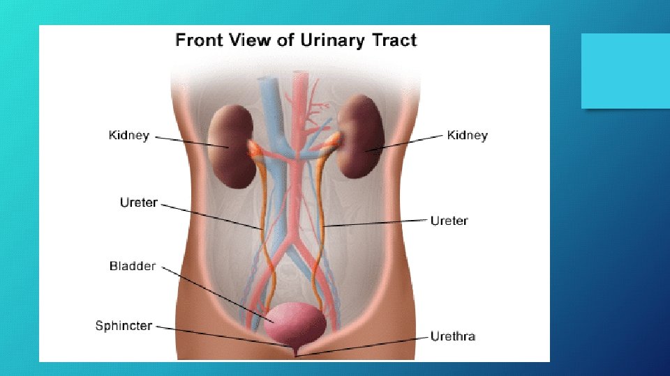 Urinary System (Excretory) • Excretes toxic nitrogenous compounds from the body. (urea & creatinine) • Eliminate toxic waste from bacteria, various drugs, & supplements. • Responsible for water & electrolyte balance. • Blood is processed by the kidneys. During rest the kidneys receive 20%25% of the entire cardiac output. The kindney’s process approx. 1, 200 ml of blood per minute • Excretory systems: • • Urinary Respiratory Digestive Integumentary