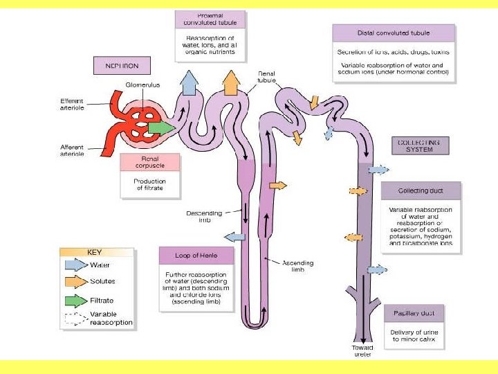 Path of Urine n n n n Glomerulus PCT Nephron loop (LOH) descending limb Nephron Loop (LOH) ascending limb DCT Collecting duct Renal Papilla Minor calyx Major calyx Renal pelvis Ureter Urinary bladder urethra