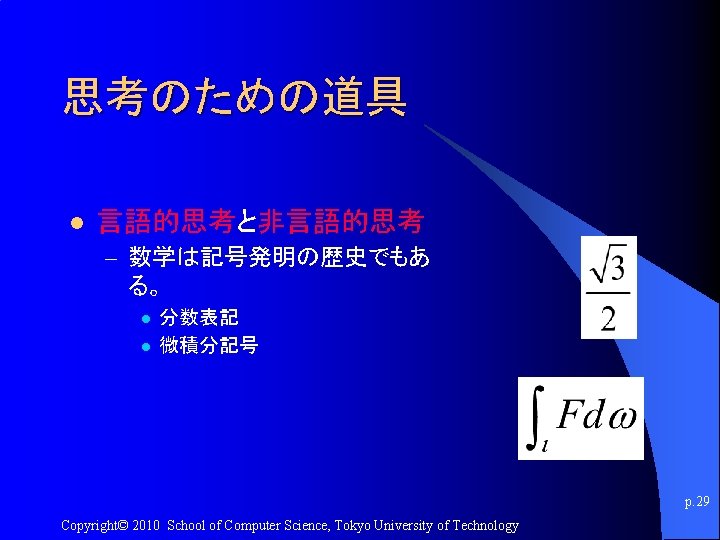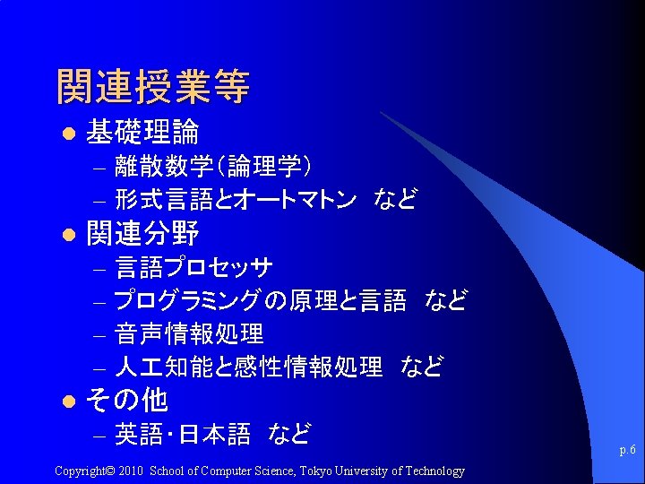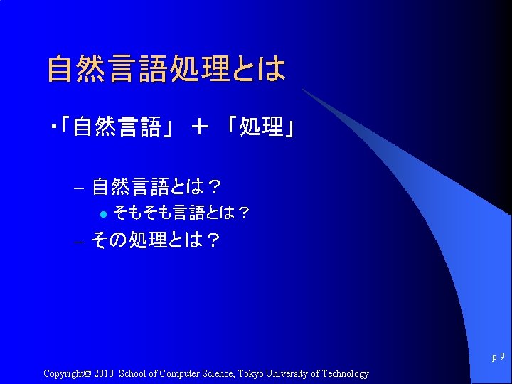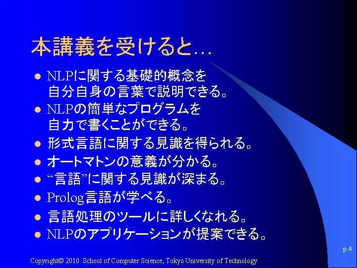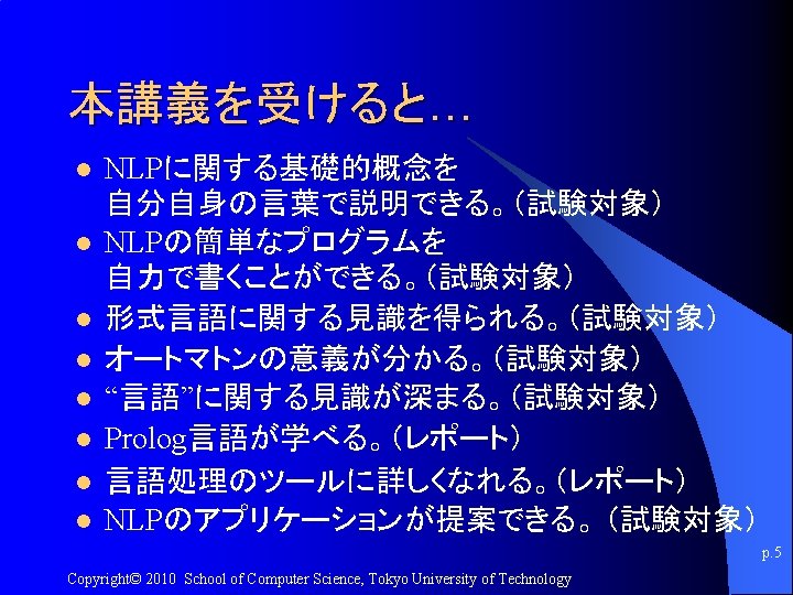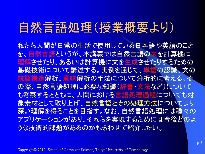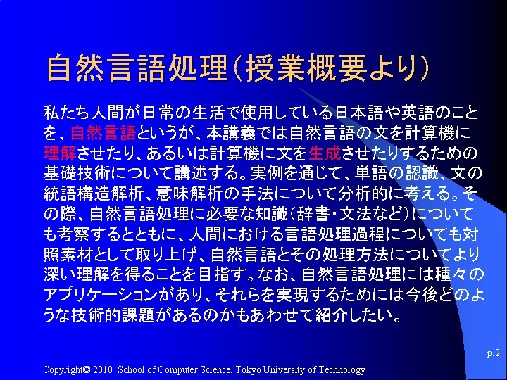 講義のURL http: //kameken. clique. jp/NLP 2010/ p. 7 Copyright© 2010 School of Computer Science, Tokyo University of Technology