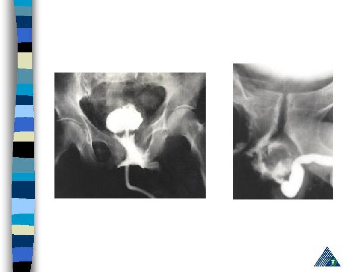 Prostate Abcess n n n n Coliform bacteria Generally urethral (ascending) Staphilococcus via hematogenous route Diabetes, immune compromised, urethral trauma, prostate biopsy Pollakiuria, disuria, acute urinary retention; fever, malaise Usually excacerbation of symptoms after acute prostatitis DRE: fluctuation Lab: pyuria, leucocytosis