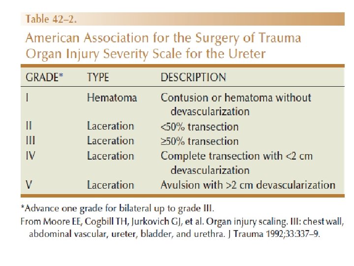 Hematuria and Renal Injury • Best indicator of significant injury(microscopic or gross) • NOT related to the degree of injury • Gross Hematuria is Variable and absent in : – 7 % of grade IV renal injury – 36% of renal vascular injury – 50% of UPJ injuries