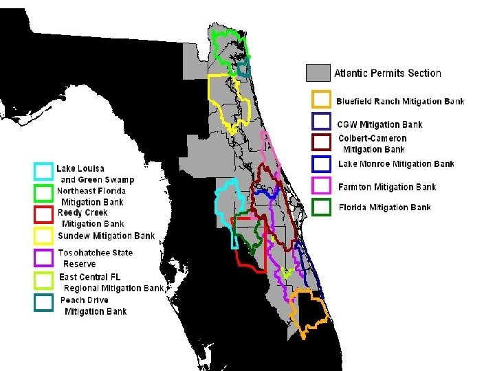 US Army Corps of Engineers Jacksonville District § § § § What makes a good mitigation bank? Adjacent to protected land / corridor Large in size High likelihood of success Protects rare and unique habitats Historically appropriate Reference wetlands to evaluate success Provides full suite of wetland functions and values