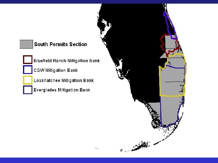 Cost of Credits – determined by banker • Loxahatchee Mitigation Bank $57, 500/herbaceous & $67, 500/forested • Bluefield Ranch Mitigation Bank $40, 000/1 agency & $55, 000/both • Everglades Mitigation Bank $46, 000/freshwater & $75, 000/estuarine