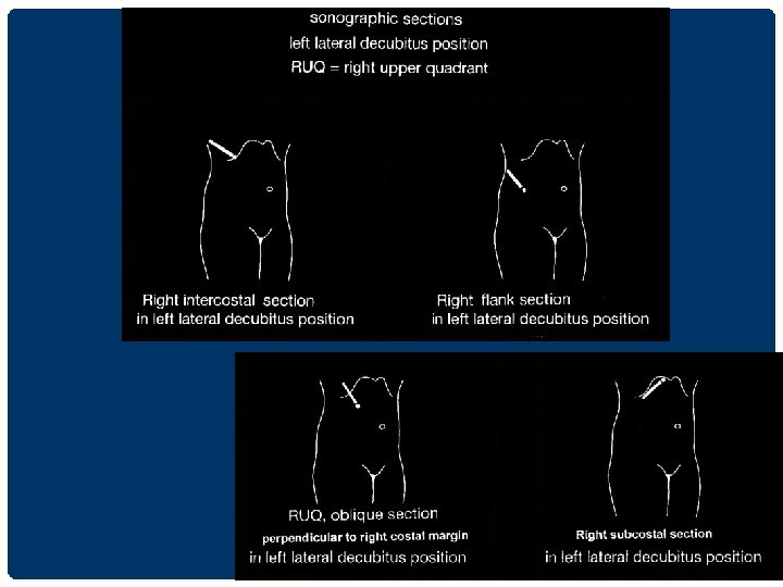 UPPER ABDOMINAL ULTRASONOGRAPHY 1. supine position นอนหงาย 2. left lateral decubitus position นอนตะแคง เอาดานซายลง 3. right lateral decubitus position นอนตะแคง เอาดานขวาลง
