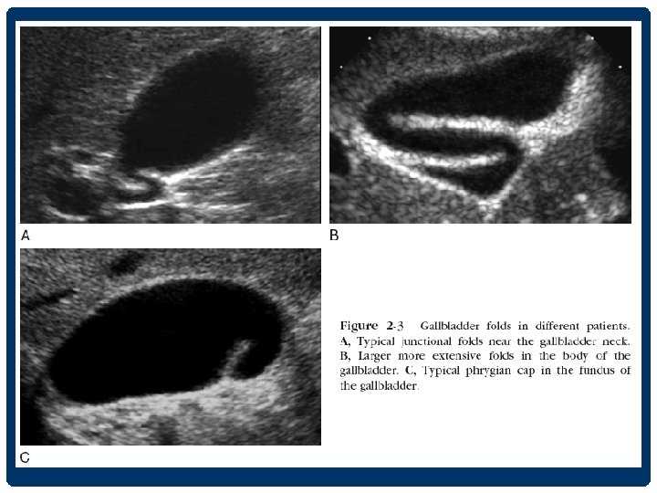 • GB distension • GB wall thickening • GS&sludge • Pericholecystic fluid collection