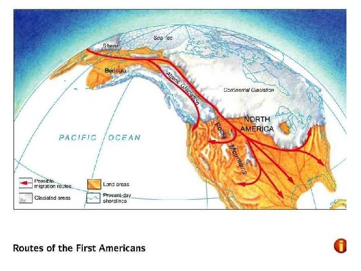 Movement BERING STRAIGHT (land bridge) • When: Ice Age (20, 000 -12, 000 years ago) • What: Ice connected Alaska & Asia • Who: Hunters from Asia crossed bridge & moved into North & South America