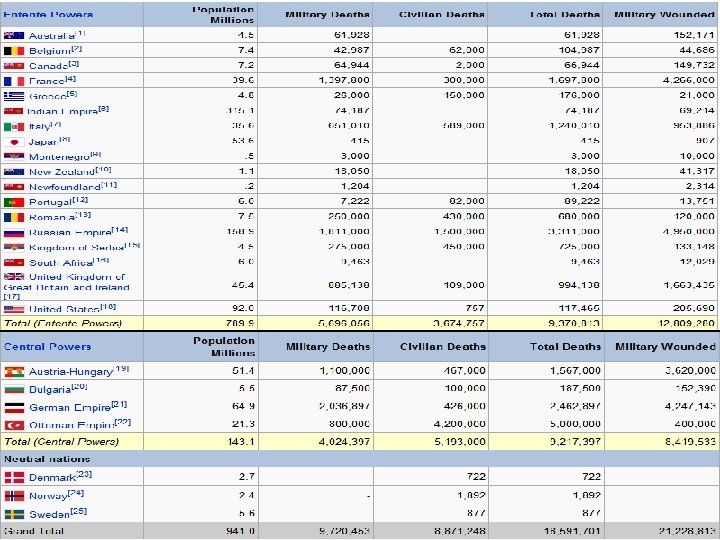 • US President Woodrow Wilson wanted the nation to remain officially neutral in its position to the European conflict. - But the new, industrial power known as America was BANKING off the war. • Wilson and the US public favored the Triple Entente; especially in terms of exporting their wartime goods. • This created a rift between the US and the Central Powers. Was this scenario truly neutral? Truly? - Germany’s policy of unrestricted submarine warfare would complicate the situation immensely. • In May of 1915, a German U-boat sank the Lusitania believing it carried supplies; killing over 1, 000 civilians which included 128 Americans.