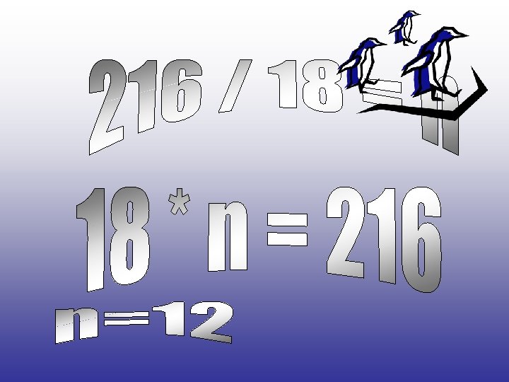 Use the model to write a complete division and multiplication equation. Solve each. 18 n 216