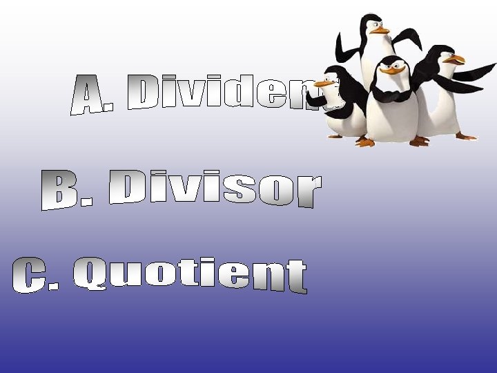 Label the Parts of the division problem: 186 / 6 = 31 A. B. C.