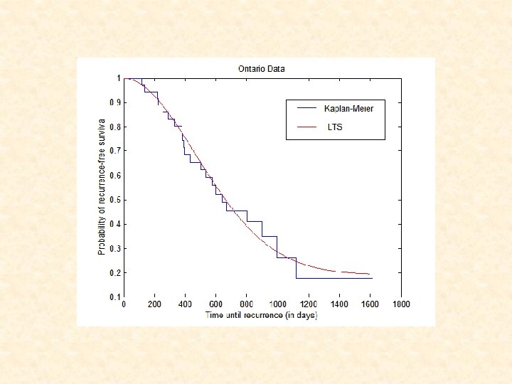 SURVIVAL ANALYSIS: LONG-TERM SURVIVAL (LTS) MODEL where T is time to recurrence and p 1 = 1 - p 2 is the prior prob. of recurrence. Adopt Weibull model for the survival function for recurrence S 1(t).