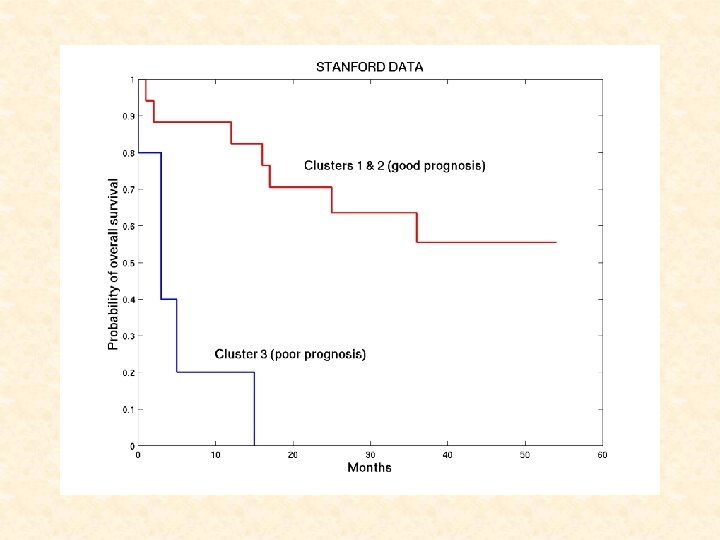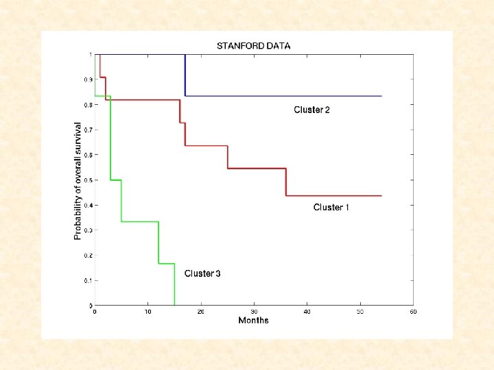 STANFORD DATA: Cluster 1: 1 -19 (good prognosis) Cluster 2: 20 -26 (long-term survivors) Cluster 3: 27 -35 (poor prognosis)