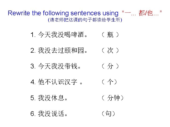 Use 到处 to translate these sentences 1. This street is so dirty, there’s trash everywhere. 2. He hasn’t cleaned/swept his room for a long time, so everywhere is a mess. 3. In China, there are bikes everywhere. 4. During Spring Festival, everywhere is bustling with noise.