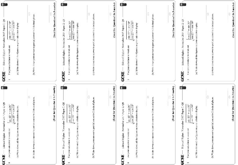 Using a Calculator – Higher – GCSE Questions These questions are the same format as previous GCSE exams. COPY means they use the exact same numbers as the original GCSE question. Otherwise, they are clone questions using different numbers. The worksheets are provided in a variety of sizes.