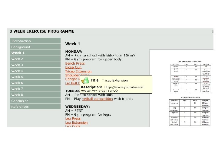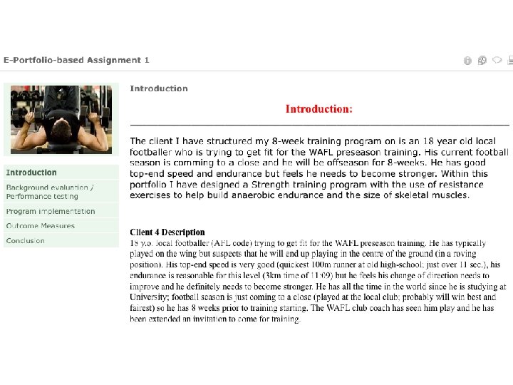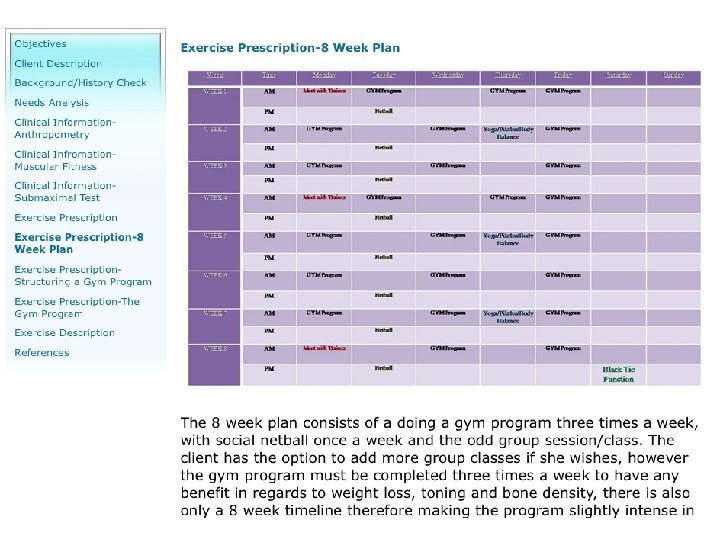Exercise program design How would you design and present an 8 week program in a webfolio? 8