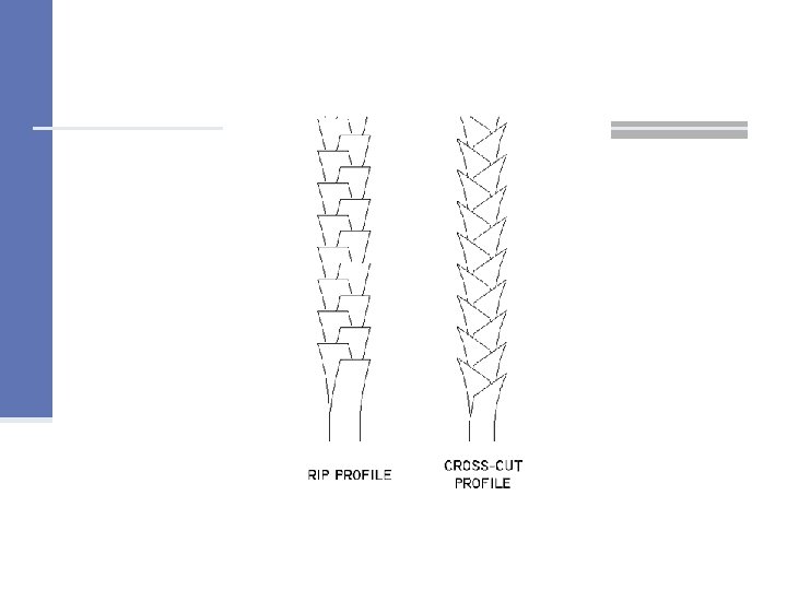 Ripsaw n. Used for sawing with the grain. n. Hold the saw at a 60 degree angle with the wood and use a wedge between the cut surfaces if the board binds.