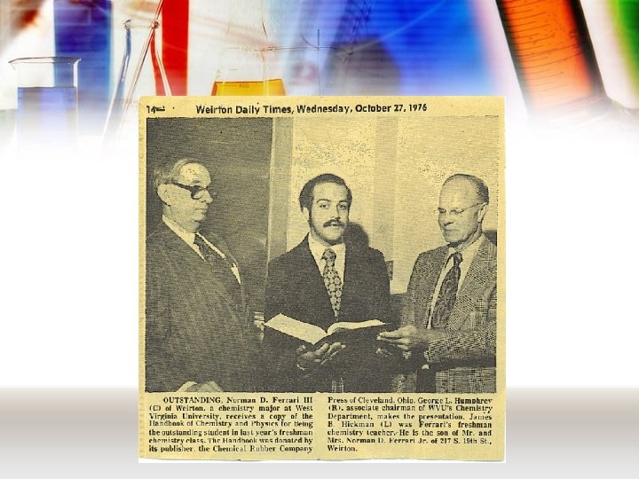 How did I get there ……. • Completed the 24 th grade – 8 primary, 4 high school, 4 college, 4 med school, 4 residency • Years 13 to 16 were studying chemistry • Years 17 to 24 refining my use of chemistry • Beyond the 24 th grade – Using chemistry to improve health of patients – Using chemistry to prepare future physicians