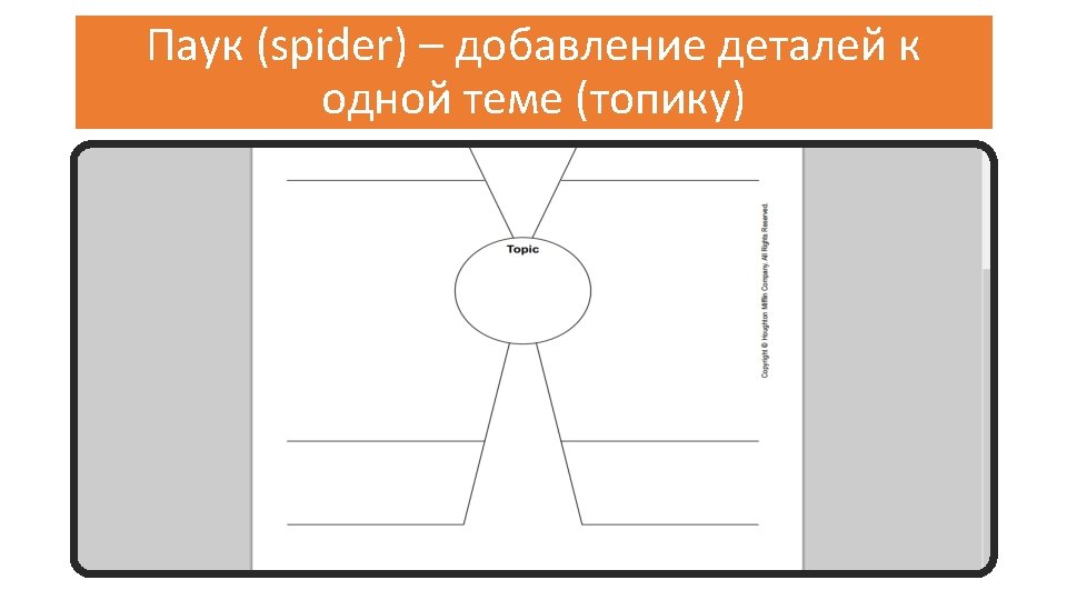 Идеи по созданию графических схем можно найти на следующих ресурсах: • http: //www. teach-nology. com/web_tools/graphic_org/ • http: //eduscapes. com/tap/topic 73. htm • Eduplace: http: //www. eduplace. com/graphicorganizer/ • Ed. Helper: http: //edhelper. com/teachers/graphic_organizers. htm • Education Oasis: http: //www. educationoasis. com/curriculum/graphic_organizers. htm • http: //www. webenglishteacher. com/graphic. html • Freeology: http: //freeology. com/graphicorgs/ • Graphic. org: http: //www. graphic. org/goindex. html • Region 15: http: //www. region 15. org/curriculum/graphicorg. html