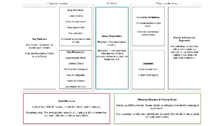 Keep in mind: • Fill it out with what you know today. That means you may not be filling in every single block. • This is meant to be revisited, revised, and redone! • What you write is meant as a hypothesis, not a fact. You may have many canvases going at once. • Be specific!