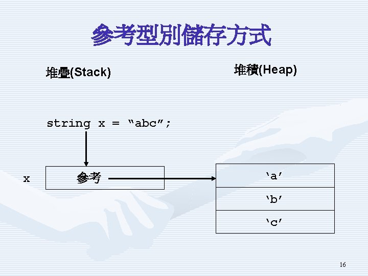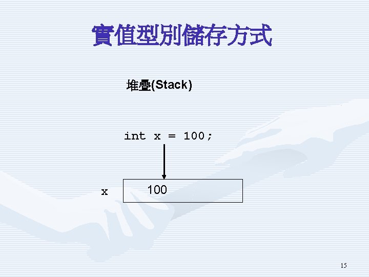 堆疊(Stack)與堆積(Heap) Heap . . . Stack 14