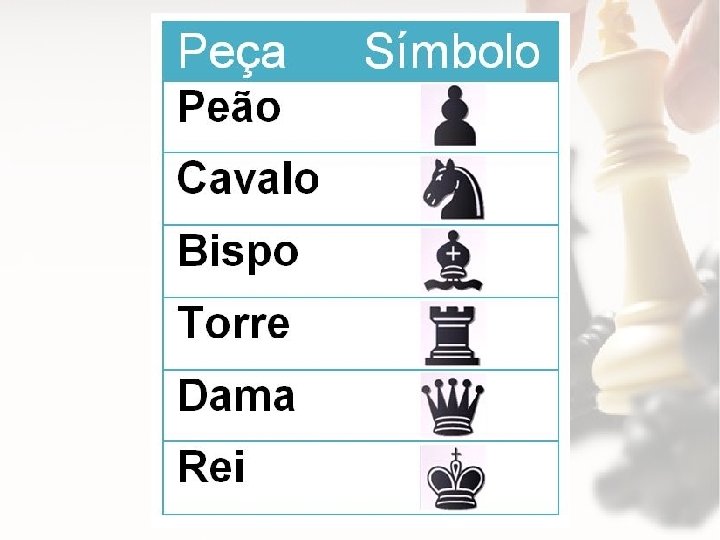 Objetivo • O objetivo do jogo é conquistar o rei adversário. • Quando o rei é conquistado o jogo termina.