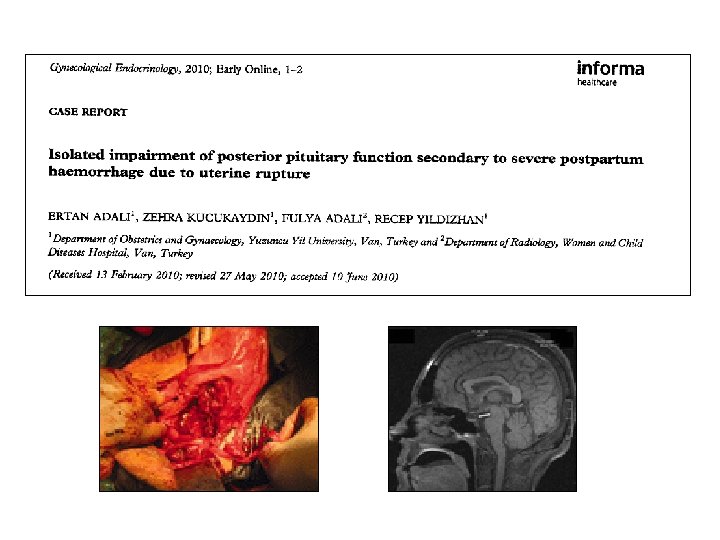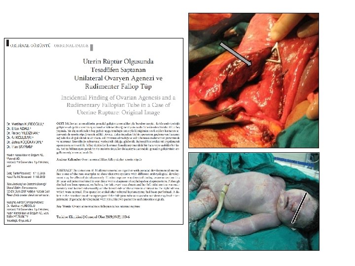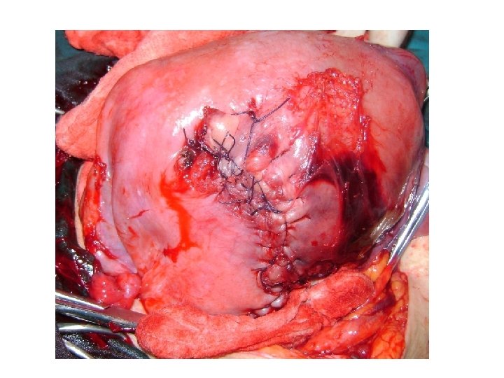 http: //library. med. utah. edu/kw/human_reprod http: //www. airahospital. org/? p=169 Cerrahi sınırları belirlerken; Annenin genel durumuna Kanamanın boyutuna Rüptürün uzanımına İleride çocuk istemine dikkat edilir. Histerektomi (total veya subtotal) rüptür longitudinal ve multiple kanama odakları varsa veya uterus enfekte ise Primer uterin onarım (+Bl. Tubal ligasyon) rüptür transvers olup serviks ve parametriuma uzanmıyorsa (Onarımı takip eden gebelikte rüptür olasılığı klasik C/S oranlarına benzer, ortalama % 9’dur) İpsilateral hipogastrik arter lig. alt segment ve uterin arteri içine alan lateral rüptürlerde