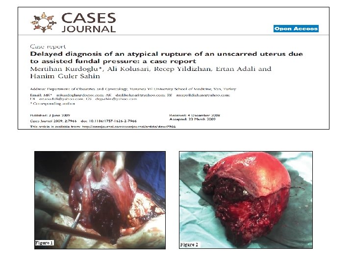 Gebelikle İlişkili Rüptür İnsidansı 1976 -2009, 20 hakemli makale 1864 olgu/2863330 gebe 1/1536 (%0. 07) % 0. 012 Skarsız %0. 033 §% 86’sı grand multiparların doğum eyleminde §%14’ü eylem öncesi Gardeil et al. J Obstet Gynecol Reprod Biol. Aug 1994; 56(2): 107 -10. Skarlı %1 % 0. 11 Wen et al. Am J Obstet Gynecol 2004; 191: 1263– 9.