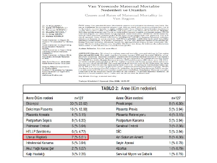 TANI Primary Surgery Vol. 1 – Non-Trauma : The surgery of labour : Rupture of the uterus. http: //www. primary-surgery. org/ps/vol 1/html/sect 0044. html Smith R. PP (Çeviri) Netter Obstetri, Jinekoloji ve Kadın Sağlığı. 2008.