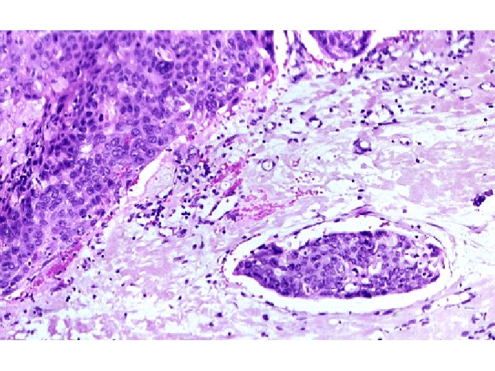 Figure 22 -22 The spectrum of invasive cervical cancer. A, Carcinoma of the cervix, well advanced. B, Early stromal invasion occurring in a cervical intraepithelial neoplasm. Downloaded from: Robbins & Cotran Pathologic Basis of Disease (on 28 April 2008 11: 48 AM) © 2007 Elsevier
