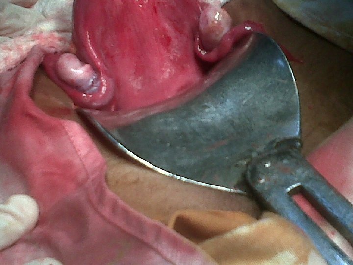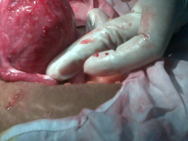 REPOSITIONING OF INVERTED UTERUS • MANUAL REDUCTION. • Sterile procedure. • Form a fist or grad the uterus and push it through the cervix of a lax uterus towards the umbilicus to its normal position. • Use the other hand to support the uterus. (Johnson maneuver)