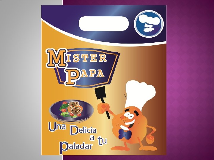 MISTER PAPA Esta empresa fue creada de los demás con un propósito de satisfacer el deleite en gastronomía en el rubro de las papas rellenas con diferentes rellenos a un publico exigente en su paladar