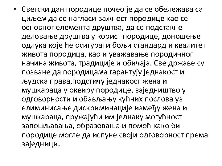 15. maj-Svetski dan porodice Ovo je moja porodica. Nju cine cetiri clana. Oni su za mene najbolji. Za mene ne postoji veca ljubav I osoba koja te vise voli od porodice. Sta god da se desi u zivotu, porodica je ta koja je uvek tu da ti pruzi ruku I bude uz tebe u najgorim situacijama. Moju porodicu je u pocetku cinilo tri clana, ali posle tri godine se rodio moj brat Danilo. Roditelji su ti, koji ce uvek biti uz nas I kada su svi protiv nas, I zato svi trebamo da ih cuvamo I postujemo. Tara Zrnic 5/3
