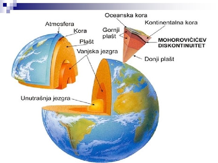 Litosfera - kamena zemljina kora, prostorno najmanja i za život najnepogodnije stanište n Debljina ispod oceana 10 do 0 km, a na kopnu 50 do 0 km n