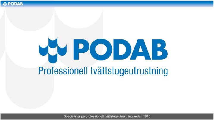 PODAB • • PODAB - specialister sedan 1945 Komplett tvätt- och torksortiment Utveckling för den svenska marknaden Lokala återförsäljare för installation, service och underhåll • Försäljning och rådgivning i hela Sverige