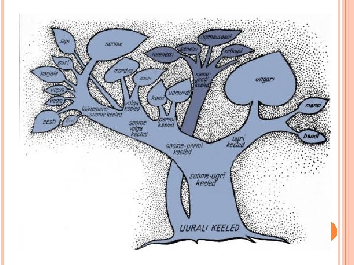 UURALI KEELTE ERIPÄRA Võrreldes teiste Euroopa keeltega on Uurali keeltes palju käändeid: � ersa ja mokša keeles 11; sölkupi k 13; eesti k 14; soome k 15; komi k 16; udmurdi k 17; ungari keeles 25 (!). Uurali keeled on aglutinatiivsed keeled, st kasutavad muutelõppe ja tunnuseid; indoeuroopa keeled kasutavad seevastu enam abisõnu. � Euroopa keelte mõjul on ka eesti keeles hakatud muutelõppude ja tunnuste asemel kasutama grammatilisi sõnu, nt omandisuhet väljendame sõnadega minu, sinu jne (vrdl soome k vaimoni ‘minu naine’).