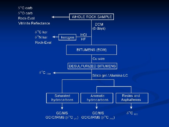 Organska tvar bitumen (dio organske tvari koji je moguće ekstrahirati iz stijene organskim otapalima) n kerogen (organska tvar u stijeni koja nije topiva u organskim otapalima) n bitumen + kerogen = ukupni organski ugljik (TOC ili Corg)