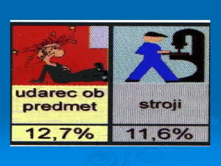 Število nezgod pri delu v Sloveniji 28, 2 na 1000 zaposlenih SLOVENIJA (l. 2000): SKUPAJ POŠKODB - 22. 375