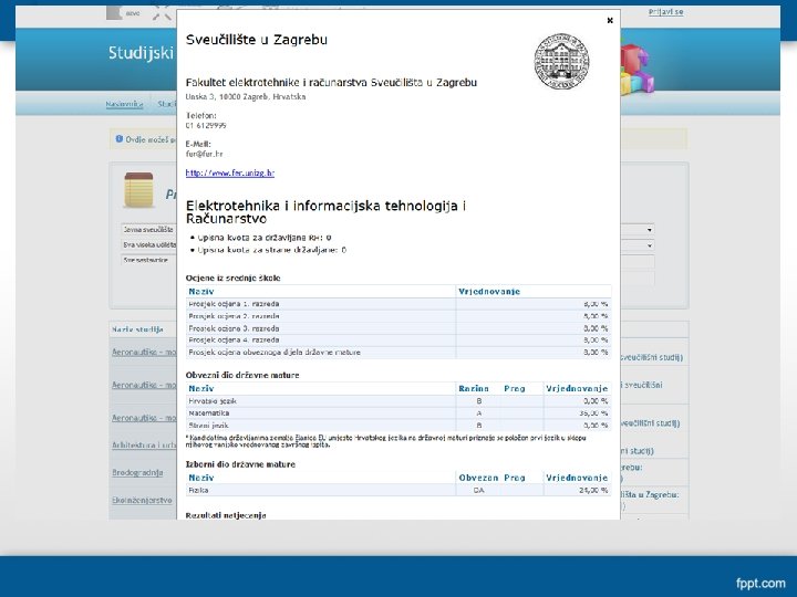 www. postani-student. hr • https: //www. postani-student. hr/Ucilista/Default. aspx • popis studijskih programa • u zaštićenom dijelu mrežnih stranica mogu se vidjeti osobni podatci, ocjene, prijave za DM, rezultati ispita državne mature, rang liste za upis na studijske programe, potvrđuje se namjera upisa (nakon položenih ispita)