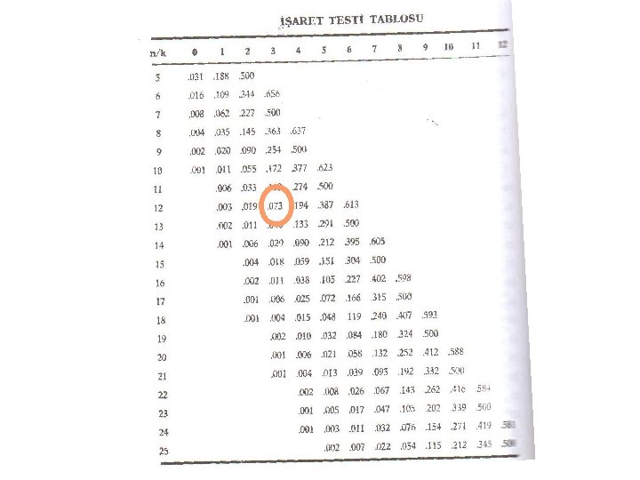 Karar: P=0. 073 Alternatif hipotezi çift yönlü kurduğumuzdan, P > /2 H 0 Kabul Yorum: Tabletlerin raf ömrüne ilişkin kitle ortancasının 7 olduğunu söyleyebiliriz.