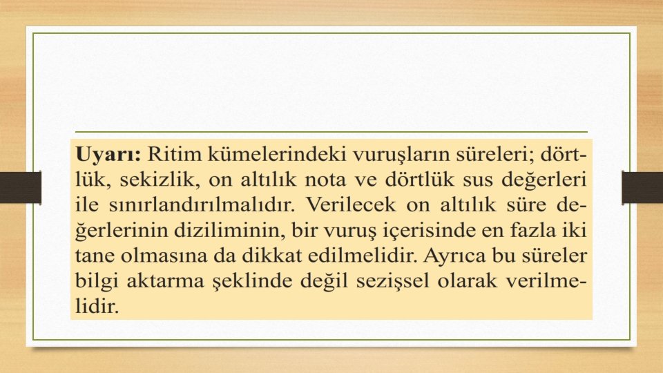 • a) Sınıfınızdaki öğrencilerin isimleri ile bir çalışma yapınız. Her öğrenciden kendi ismini uzun ve kısa süreli hece işaretleri ile göstermesini isteyiniz. • • Du ru Mus ta fa Naz lı Han dan (. ) ( ) ( ) Ya se min (. ) Ü mit ( ) ( )