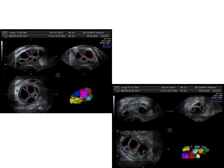 3 D UZV - VOLUMEN JAJNIKA • 2 osnovne metode za izračun volumena: Konvencionalna „multi planar” metoda VOCAL (virtual organ computer-aided analysis)
