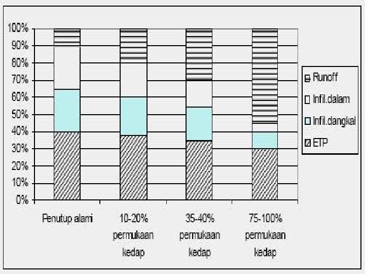27 Masalah banjir dan kekeringan akibat dari kerusakan lingkungan. Dataran rendah di Indonesia pada umumnya berupa dataran yang subur sebagai hasil dari endapan yang dibawa banjir sangat menarik untuk dimanfaat-kan sebagai kawasan pemukiman yang sekaligus juga sebagai lahan usaha pertanian. Kebutuhan yang semakin meningkat akan lahan untuk berbagai kebutuhan yang berakibat pula semakin meningkatnya resiko terjadinya bencana banjir. Keadaan di atas semakin parah dengan semakin meningkatnya penebangan hutan dan pemanfaatan tanah di daerah hulu sungai. Meningkatnya usaha tani di daerah pegunungan tersebut menyebabkan semakin meningkatnya erosi dan pendangkalan sungai yang akhirnya meningkatkan frekuensi kejadian banjir