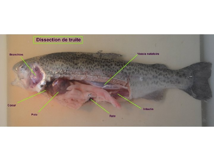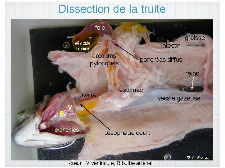 1)Organisation générale des vertébrés : La dissection montre que la truite, la grenouille et la souris partagent une organisation générale commune au groupe des vertébrés.