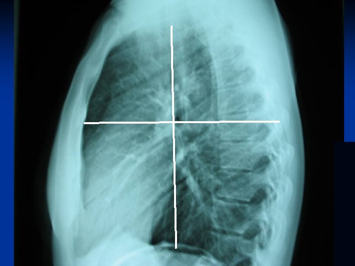 Interpretação do Radiograma tórax - Perfil Sinal da coluna v coluna dorsal mais visível de cima para baixo v maior quantidade de músculos na parte superior do tórax v menor volume de ar pulmonar nesta região