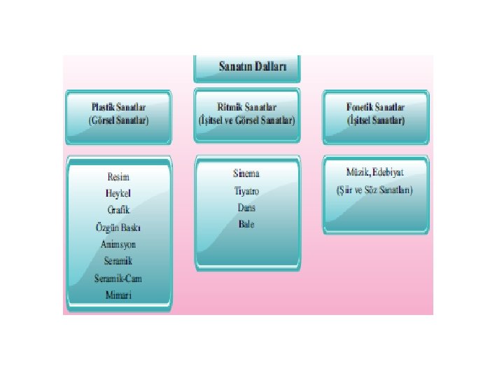 2. Sanat Eseri ve Özellikleri: Sanat eseri, somut ve ögesi ortada olan estetik bir nesnedir. Örneğin: Bir tiyatro oyunu, bir heykel, bir tablo, bir müzik parçası vb. birer sanat eseridir. Bir sanat eseri şu üç temel ögeden oluşur: a) Sanatçı b) Sanat eseri c) Sanat eserini anlayıp takdir eden kişiler (alımlayıcı, suje)